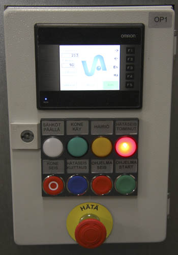 Liikkeet tapahtuvat pneumaattisesti logiikkaohjattuna. Koneessa on kosketusnäyttö, josta koneen ohjaus on helppoa ja vaivatonta.